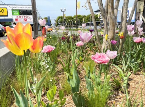 現在、サンロードシティ熊本(熊本市東区東町)の花壇は