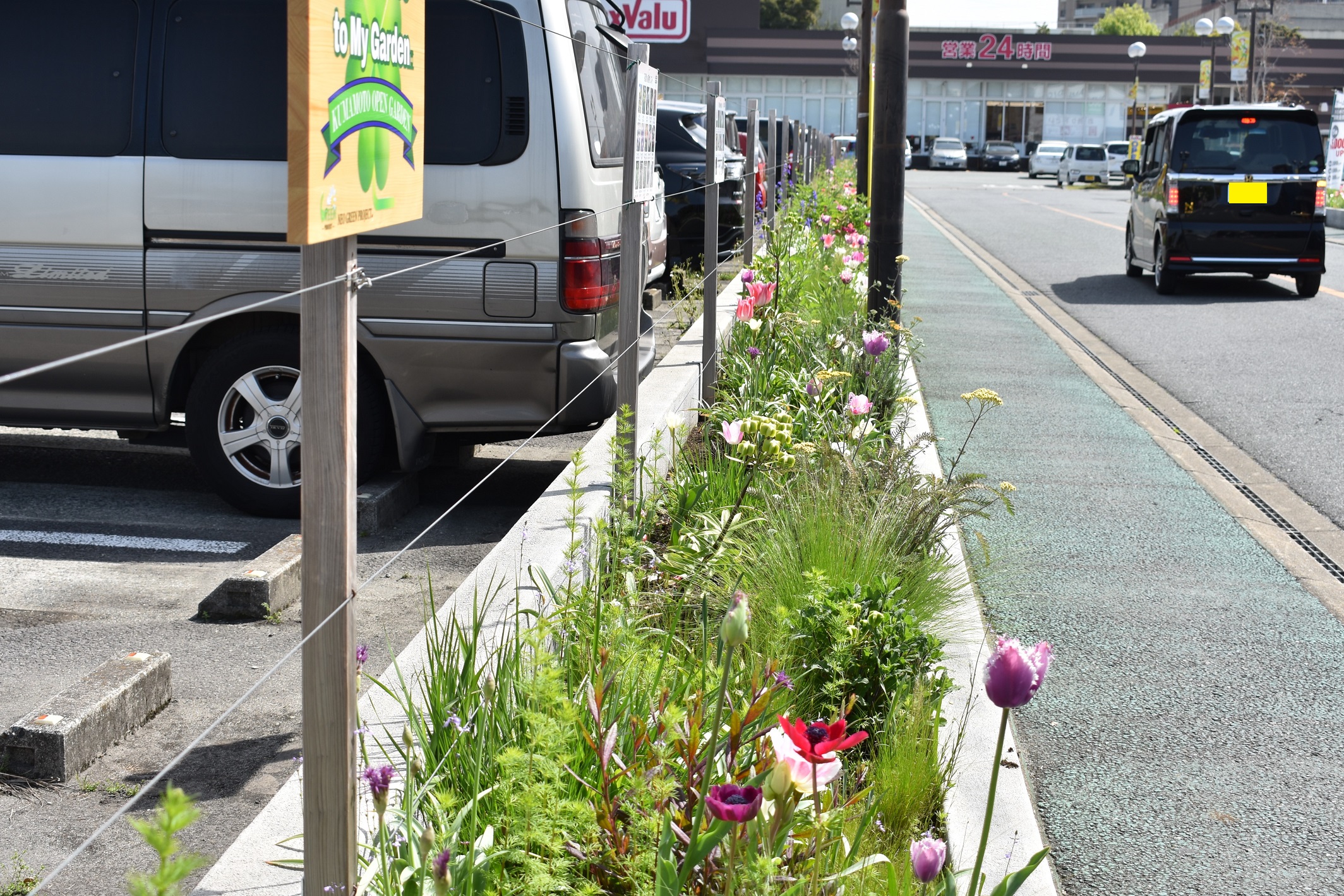 学生さん達の力もお借りして、スコップを使い植えて行きます。