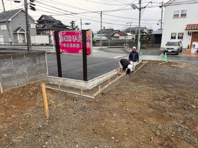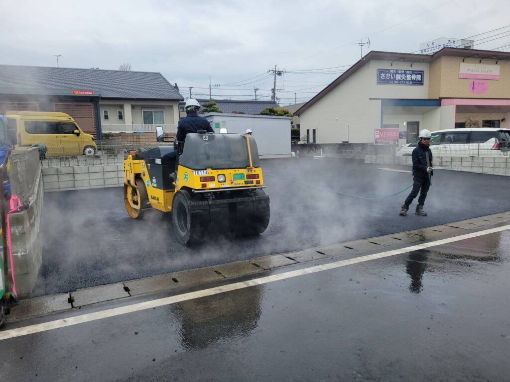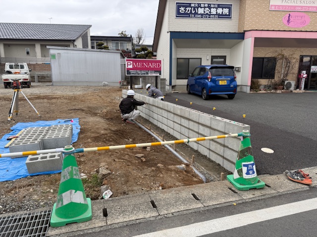工事状況2 執筆者 kumamiya | 3月 6, 2026 | お知らせ, 工事状況, 社長ブログ 先月に続き、工事の進捗状況をご報告します。 境界ブロックを積むまえに、基礎コンクリートの鉄筋を配筋中です。 ブロックを積み、目地をモルタルでつめています。 ブロック積み、フェンスの取り付けがおわり、敷地内の路盤が完了しました。 いよいよアスファルト舗装中です。 白線引き、車止め、伸縮門扉をとりつけ完成です。