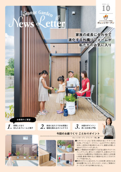 お庭づくり、外構工事の広報紙「ニュースレターvol.10」 表紙と施工例紹介ページ