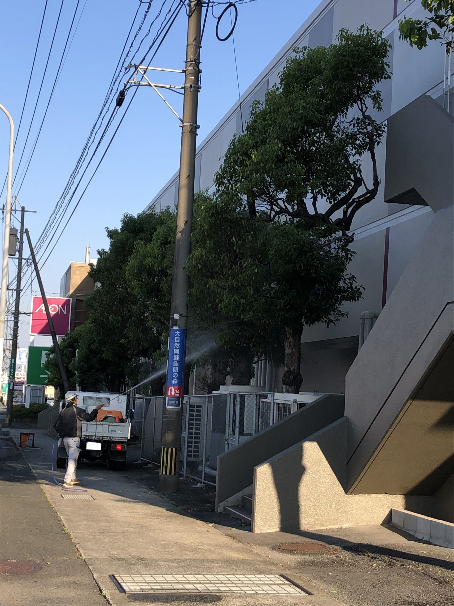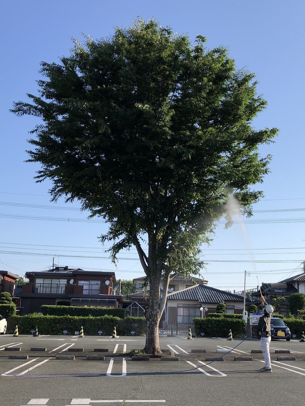 こんなに大きく育った植木の消毒もプロの手にかかれば…✨