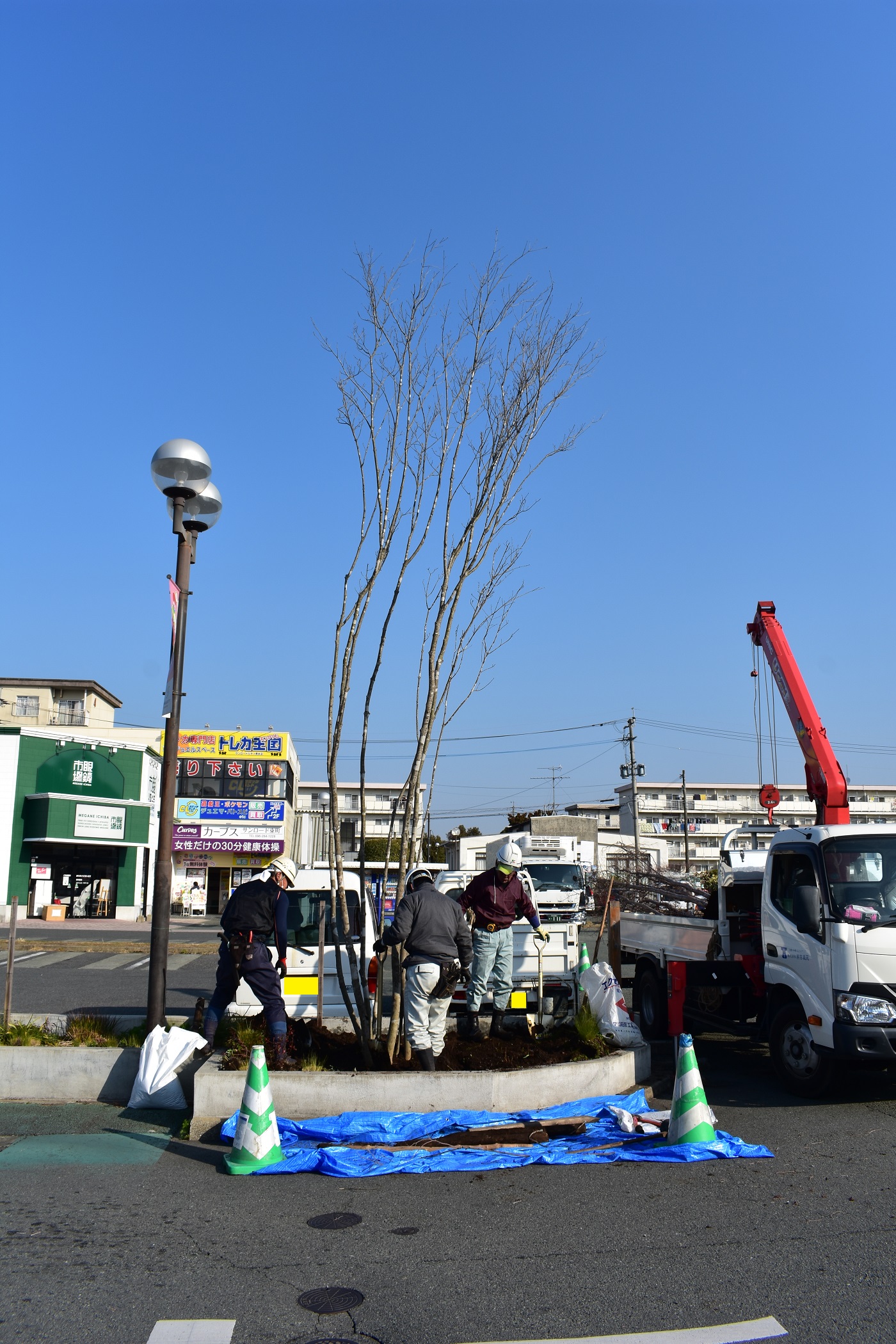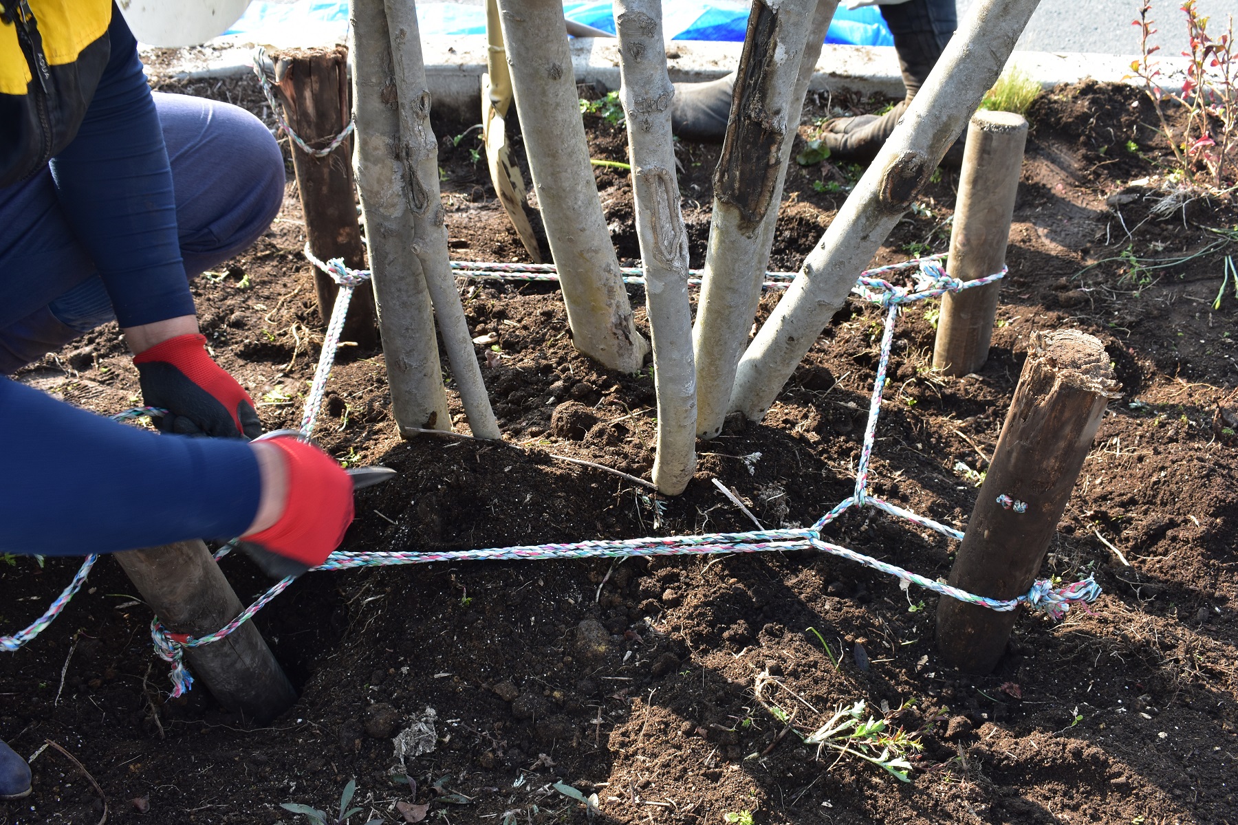 最終的に木の周りの4本の柱は深く埋められるので